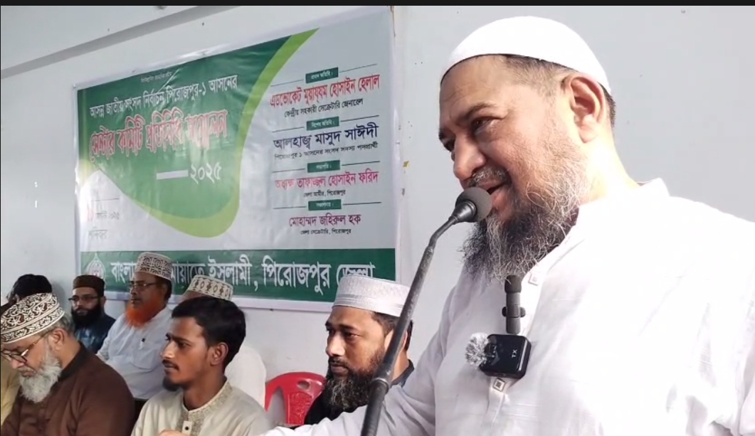 আসন্ন জাতীয় সংসদ নির্বাচনে পিরোজপুর ১ আসনের সেন্টার কমিটি প্রতিনিধি সম্মেলনে তিনি প্রধান অতিথির বক্তব্যে এসব কথা বলেন। আজ শনিবার (৯ আগস্ট) বিকালে শহরের সাঈদী ফাউন্ডেশনের তাফহিমুল কুরআন আলিয়া মাদ্রাসা সভা কক্ষে এ সম্মেলন অনুষ্ঠিত হয়। সম্মেলনে জেলা জামায়াতের আমীর অধ্যক্ষ তাফাজ্জল হোসাইন ফরিদ এর সভাপতিত্বে ও সেক্রেটারি অধ্যক্ষ জহিরুল হক এর সঞ্চালনায় আরও বক্তব্য দেন, সংসদ সদস্য প্রার্থী ও সাবেক উপজেলা চেয়ারম্যান মাসুদ সাঈদী, নায়েবে আমীর মাওলানা আব্দুর রব, সহকারী সেক্রেটারি মাওলানা শেখ আব্দুর রাজ্জাক, পৌর আমীর ইসহাক আলী খান, ছাত্রশিবিরের জেলা সভাপতি কে এম ইমরান খান প্রমুখ। সম্মেলনে ইন্দুরকানী উপজেলা ও পিরোজপুর সদর উপজেলার সেন্টার কমিটি গুলোর সভাপতি-সেক্রেটারিগণ উপস্থিত ছিলেন।