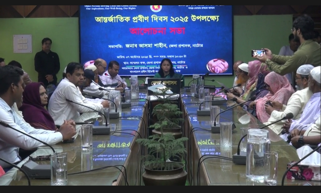 একদিন তুমি পৃথিবী গড়েছো, আজ আমি স্বপ্ন গড়বো সযন্তে তোমায় রাখবো আগলে এই প্রতিপাদ্য নিয়ে র্যালী ও আলোচনা সভার মধ্যে দিয়ে নাটোরে আন্তর্জাতিক প্রবীন দিবস পালন করা হয়েছে।