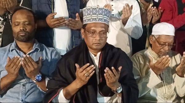 দোয়া মাহফিলে মুসল্লিরা একত্রিত হয়ে দেশনেত্রী, ‘মানবতার মা’ বেগম খালেদা জিয়ার দ্রুত আরোগ্য ও সর্বাঙ্গীণ মঙ্গল কামনা করেন।